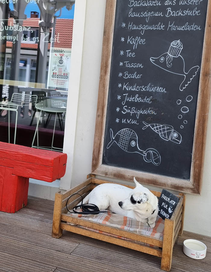 Apropos Bummeln, sehr viele Geschäfte und Lokalitäten haben Wassernäpfe vor ihren Türen stehen, sodass auch in den warmen Sommermonaten kein Durst aufkommt. Wo ihr auch unbedingt vorbeischauen solltet, ist der Design-Shop 1837 im Inselloft. Hier gibt es handgemachte Halsbänder und Hundeleinen, die eine richtig coole Urlaubserinnerung sind. Außerdem bekommt ihr hier tolle Keramiknäpfe & Kuscheldecken für echte Inselhunde! Direkt nebenan in der Bäckerei packt ihr euch dann noch eine Tüte der selbstgebackenen Hundeleckerlies ein, die sich einer riesigen Beliebtheit erfreuen (der eigene Hund bestätigt’s ;)).